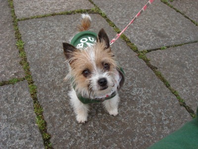 ピューピューゴーゴーすんごい風。 コーの耳はピラピラ、ゆらは吹っ飛ばされそうになりながら広場に行きました。 見知らぬ小学生の女の子が、枝を投げゆらに取りに行かせて遊んでいました。